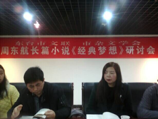 研讨会上,周东航先生首先介绍了长篇小说《经典梦想》的创作出版发行情况。来自我市教育界、文学界、杂文界的同志对作品进行了深入研讨交流。